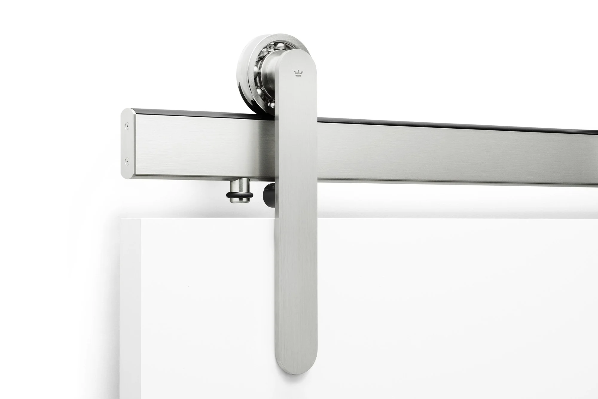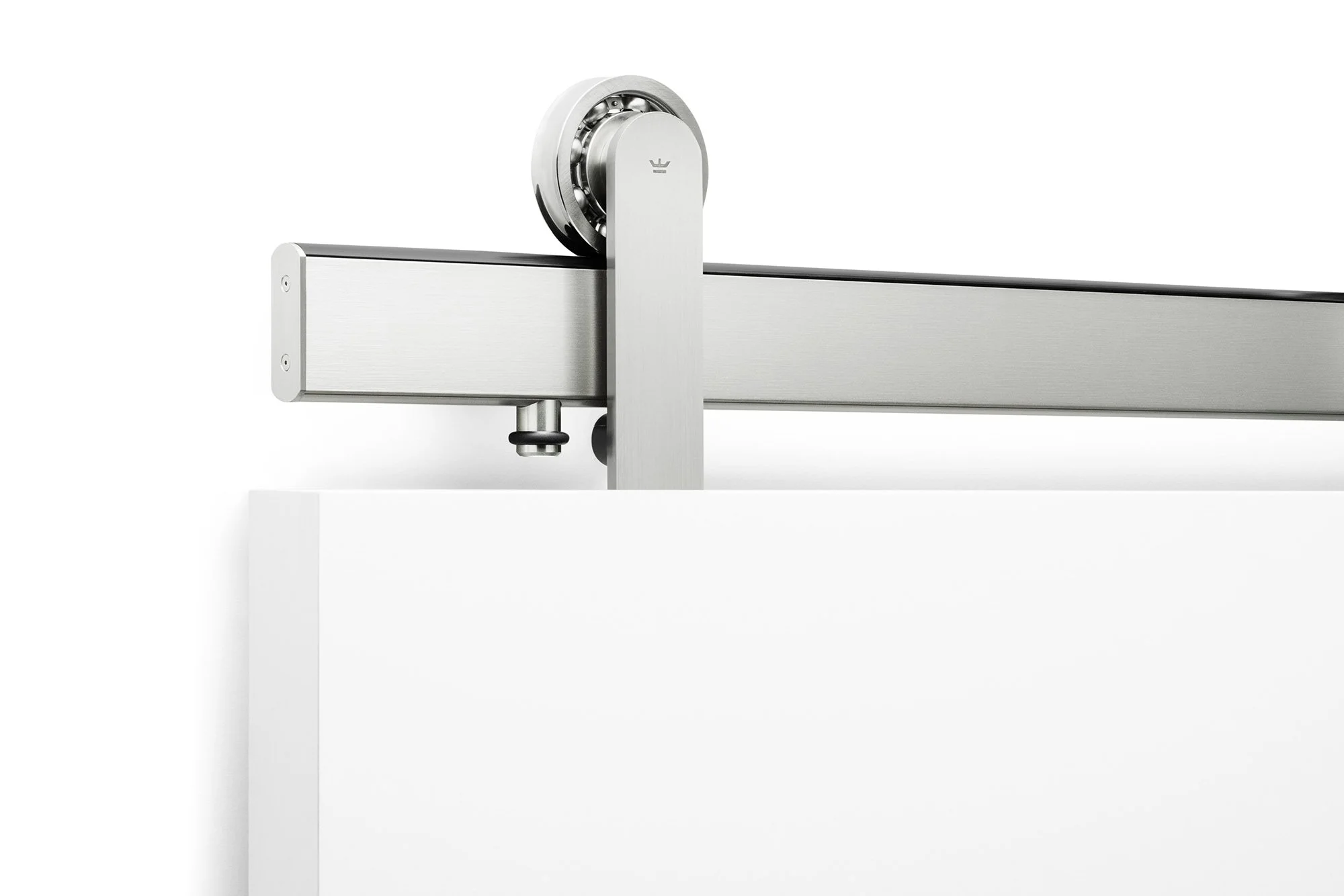 While most sliding door hardware relies on visible fasteners for purely functional reasons, Oden’s custom-extruded track cover elegantly sidesteps this constraint. With truly concealed fasteners, the track appears to float along the wall. And Oden’s trolleys feature Krownlab’s iconic, patented, exposed bearings as wheels. Simply put, there is no other sliding door hardware system on the market like Oden.